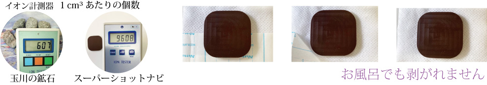 ナビスパは高濃度のラジウム鉱石を大量にシリコンゴムに練りこんでいますので大量のマイナスイオンと遠赤外線を24時間出し続けます。